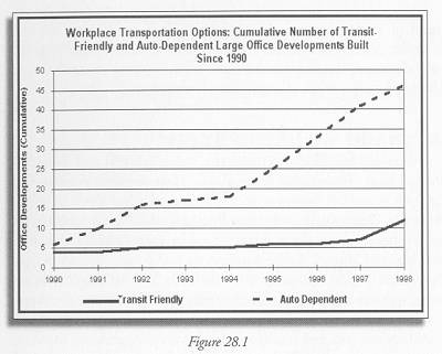28. Workplace Transportation Options Why do we care? This indicator tracks the location of large new office complexes according to whether they are...
